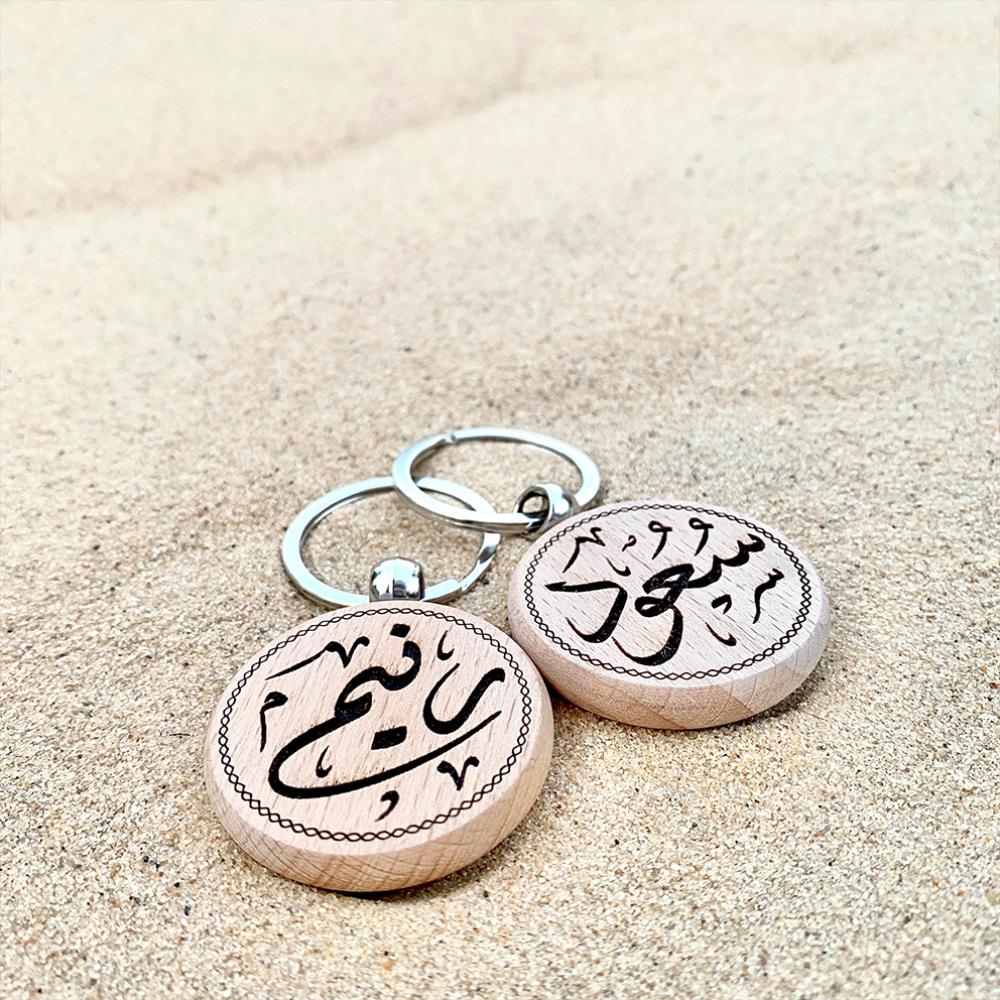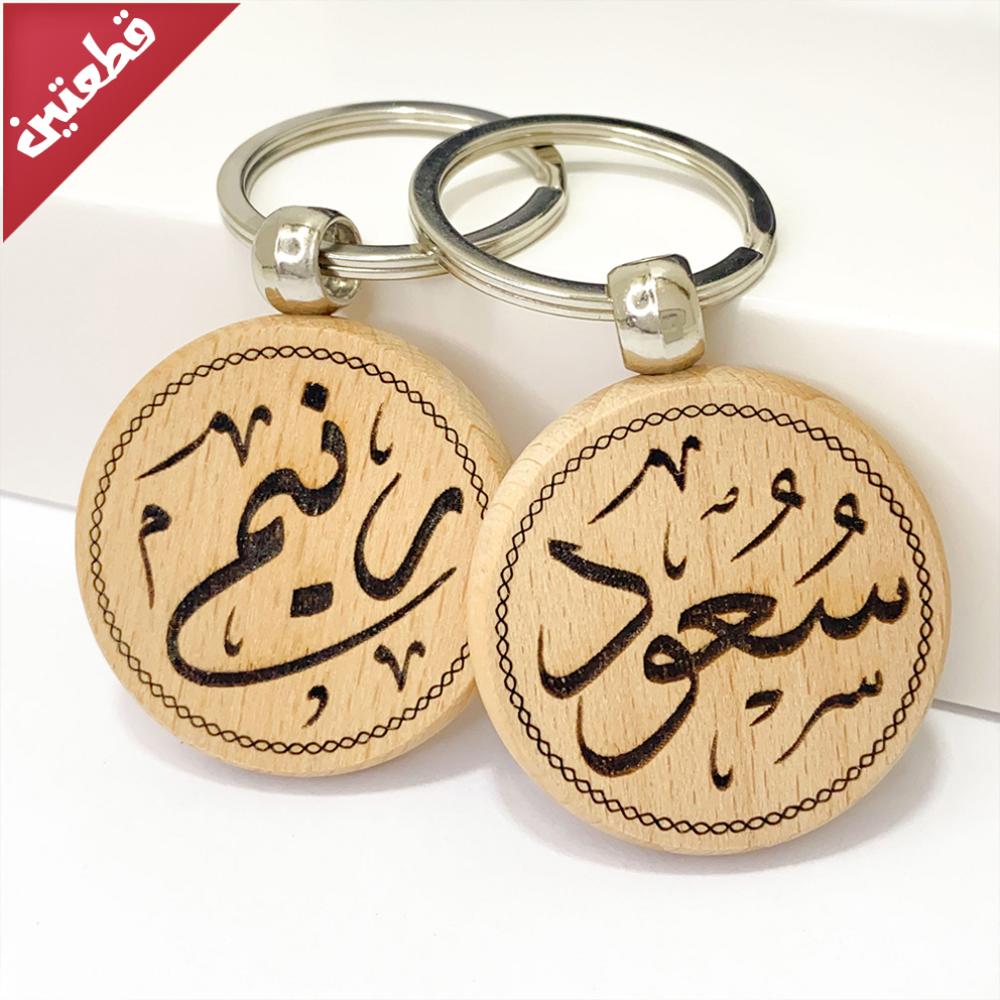 تميز بميدالية المفاتيح الخشبية المصنعة من الخشب الطبيعي والمصممة باسمك وباسم من تحب .